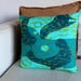 100 % organic, square cushion in vibrant blues and greens, based on my Selkie screen print.